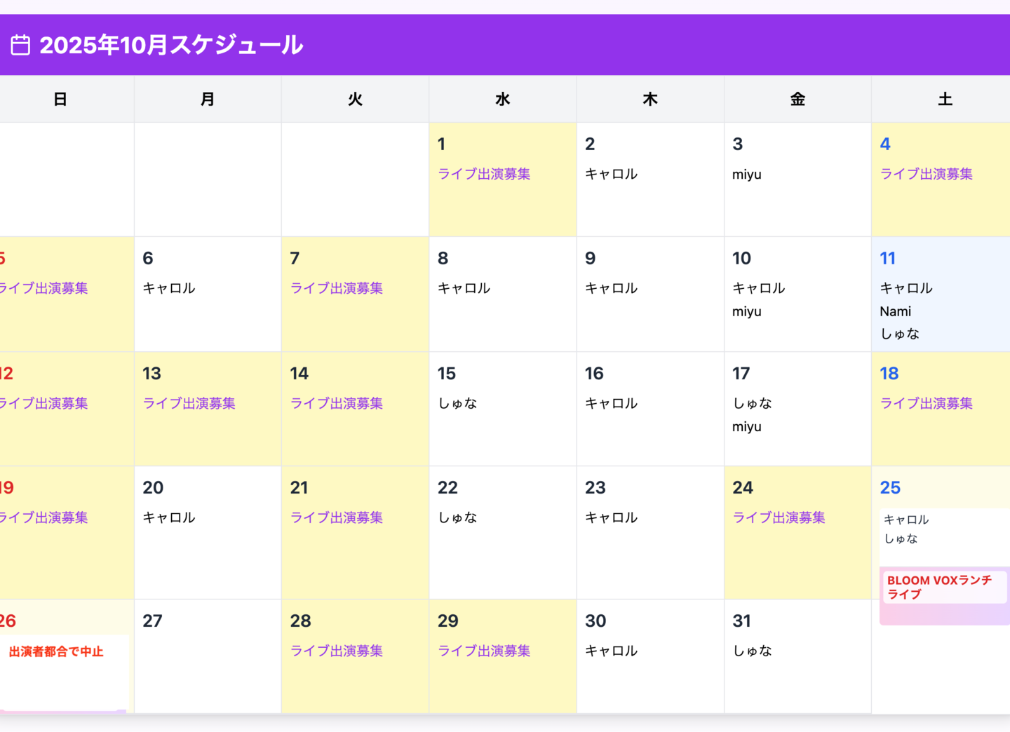 2025年10月 12日(日) お知らせ キャロルさんが、ワールドフェスタ2025(山下公園メインステージ)出演を無事に終えることができました。ありがとうございます。